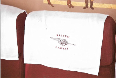 One of the antimacassars in the "Silver Lariat" with the car's emblem.