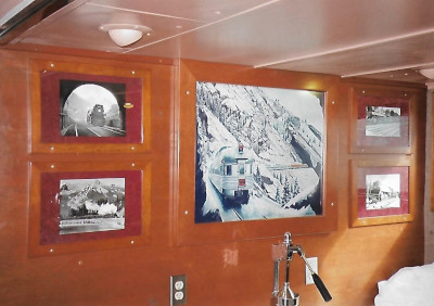 A steam train painting in one of the cars.