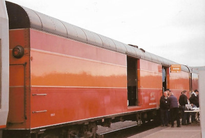 DLMX baggage car 5659 "Gordon Zimmerman" (ex. Friends of 4449 "Better Idea", exx. Union Pacific 904227 1975, exxx. Union Pacific 24227 1969, nee Union Pacific 5659). Built 1954.