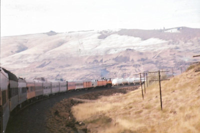 Meeting a BNSF freight outside Pasco.