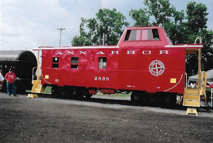 Ann Arbor caboose 2838 (ex. Bluewater Michigan Chapter 2838, nee Ann Arbor 2838). Owned by the Steam Railroading Institute.