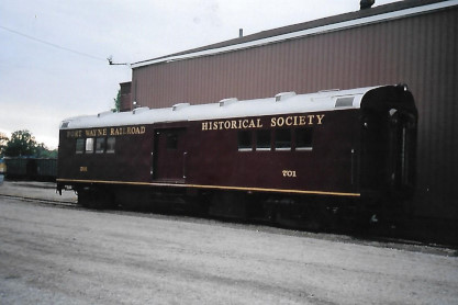 Fort Wayne Railroad Historical Society tool car 701 (ex. US Army kitchen car 89665 1953). Acquired by FWHRS in 1979 and converted to a tool car in 1981 for use behind Nickel Plate 765.