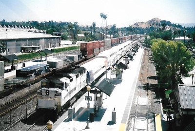 After yesterday's steam excursion, I was ready for more train riding. Today, a triangle trip on Metrolink from Santa Ana to San Bernardino, then San Bernardino to Riverside, Riverside to Los Angeles, a stop at Angels Flight Railway, then Los Angeles back to Santa Ana. After breakfast at Polly's, Chris picked us up and drove us to the Santa Ana station.