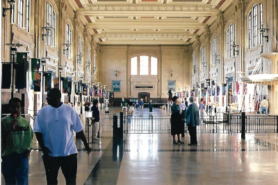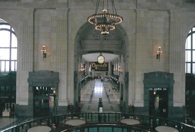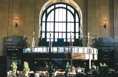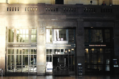The Fred Harvey Restaurant at the east end of the Grand Hall. Even though the restaurant was not restored, the area is used as the Fred Harvey Food Court.