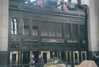 Entrance to the Amtrak station. The other signs are companies that occupy the second and third floors; they used to be the offices of the railways that served Kansas City.