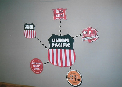 On one of the walls were emblems of the railways that served Kansas City and their current names.
