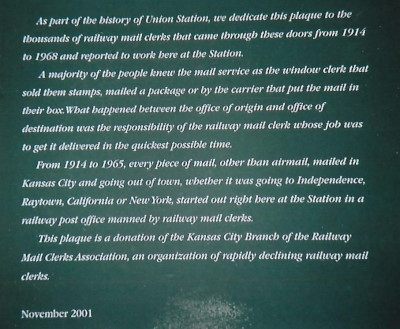 Explanation of the route the mail went from Kansas City via rail to other parts of the country. Since Bob's camera was better suited than mine to taking these wide-angle interior pictures, he did the upper floor photography.