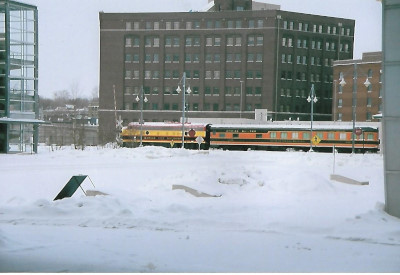 Kansas City Southern FP9 734 (ex. KCS 4, exx. VIA 6507, nee Canadian National 6507) and Great Northern observation car 1292 "Going To The Sun Mountain" (became Burlington Northern 1201 1970).