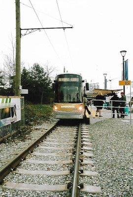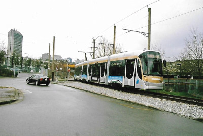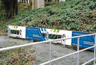 Experimental Streetcar LineFrom January 21st to March 21st, 2010, a 1.1 mile free demonstration service called the "Olympic Line" (named for the 2010 Winter Olympics) ran every six minutes, 18 hours a day on the Downtown Historic Railway between Cambie Bridge and Granville Island, using two modern Bombardier Flexity Outlook streetcars, numbers 3050 and 3051, borrowed from the Brussels tram system. The City of Vancouver and the administrators of Granville Island paid $8.5 million for associated upgrades to the infrastructure. The City considered the streetcar demonstration "a tremendous success", with over 550,000 boardings during the two months of the experiment. Bombardier received an award for "Exceptional Performance and Outstanding Achievement" at the 2010 CUTA awards, recognizing its operation of over 13,000 one-way trips with zero equipment failures, zero station delays and zero injuries. The Mayor of the day, Gregor Robertson, indicated a desire to continue operation of the line, with a potential extension to Main Street - Science World Station via False Creek South, but mentioned that the city alone lacks the millions of dollars needed to complete the construction and equipment purchases. Nonetheless, a streetcar along the alignment used by the Olympic Line was part of two of the proposals for rapid transit running east-west through the city of Vancouver in 2020. After the Olympic demonstration line ended, most of the overhead copper wires fell victim to theft and the line has remained unused.