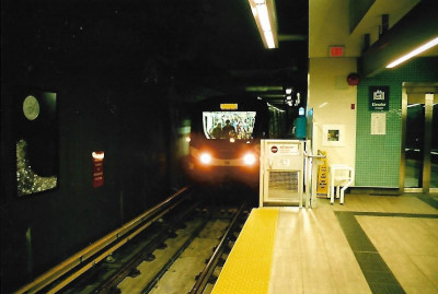 A Waterfront bound train at Bridgeport Station, with myself in the 'railfan' seat.
