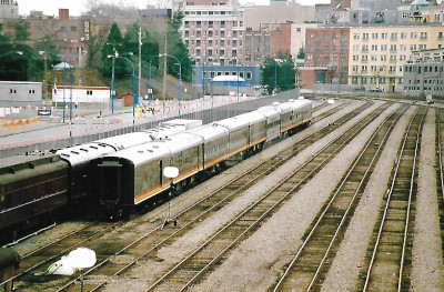 Canadian Pacific business cars and the Royal Canadian Pacific excursion cars parked at the former Canadian Pacific Station for the Olympics.