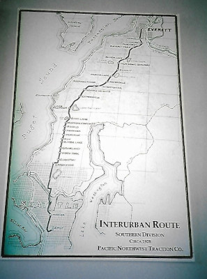 The first trip for the press of the Seattle-Everett Traction Company was April 30th, 1910 and the first public trip was two days later. The journey took an hour and thirty-five minutes to run the 26 miles with 29 stops from Seattle to Everett.