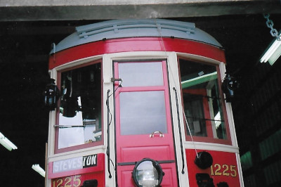 BCER interurban car 1225, built in 1912 and worked in Vancouver, Steveston and Burnaby from 1913 until February 28th, 1958. In the early 1950's, as the BCER was being wound down, many of the cars were decommissioned. Most ended up being burnt at the rail yard under the Burrard Street bridge. Some were purchased and moved to museums south of the border. BCER 1225 found its way to the Orange Empire Railway Museum (OERM) in Perris, California. In August 2005, BCER 1225 returned home to Canada after a fifty-year absence on two flat cars. Hundreds of volunteer hours had gone into the restoration.
