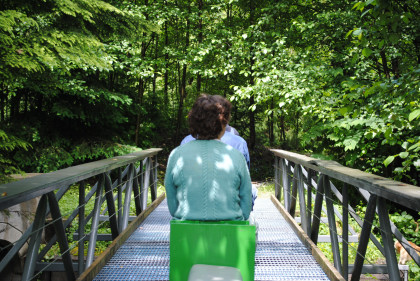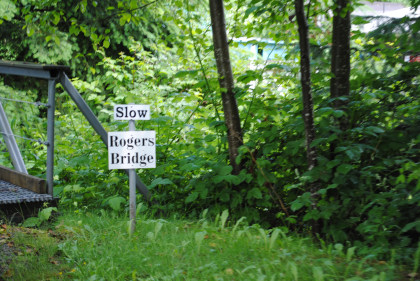 Going over Rogers Bridge; the latter photo by Chris who was sitting in a car behind.