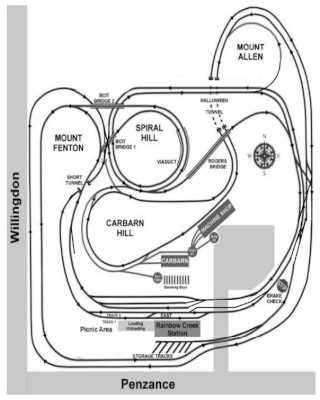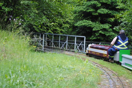 Operated by the British Columbia Society of Model Engineers, the group's history goes back to 1929 when several miniature railway enthusiasts came together to form a model engineering club. Many of them had home workshops, and in their spare time lovingly created miniature locomotives. At that time the club did not have a track of its own and members met from time-to-time at tracks that existed on someone's private property to run their trains. Naturally, these members wanted to share the fruits of their labours with other enthusiasts and the public, and to re-kindle the memories of that bygone era when most people travelled long distances by train. The search was on for a property of their own, and finally on July 1st, 1975, the club opened its doors to the public at the track which was located at the Burnaby Village Museum. Over time it was found that the site was not large enough to meet their needs and there was no room for expansion. Burnaby Parks assisted in relocating to their present seven-acre site, which had been used as a municipal works yard. In late 1991, the BCSME closed their original track, and after almost two years of back-breaking work, opened at our current location in Confederation Park on Dominion Day 1993. Landscaping of the current site included 8,500 loads of fill from the Cassiar Connector highway project with which four hills were created.