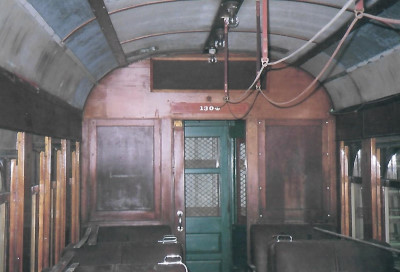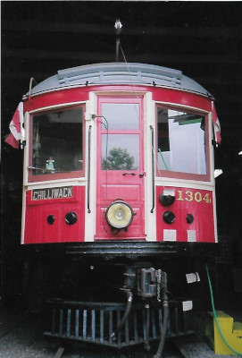 BCER interurban 1304 "Connaught", also undergoing restoration. Built in 1911, this car was on the 1912 Royal Tour of Canada and was named for the Governor- General of Canada, the Duke of Connaught. After that the car ran on the Chillwack Line then in 1945, it caught fire and burned to its steel frame. It was then rebuilt and returned to service running until October 1950. 1304 had not been out on the Chilliwack line for almost five years, but when Yarrow teacher Miss J.E. Fowlie wondered in a letter to President Grauer if her Grade Three students might not have a train ride to round off a study unit on transportation, it was as good as done. One of the diesels hauling a freight train brought 1304 to Chilliwack, where the thirty-eight students, with their teacher, boarded it for a forty-five minute ride to Yarrow. After the students had inspected the train's caboose, the freight train continued on its way to New Westminster, leaving behind a class of bubbly, still wide- eyed children." Car 1304 left Canada in 1955 and moved to Glenwood, Oregon to reside at the "Trolley Park" of the Oregon Electric Railway Historical Society. After fifty years, it returned to British Columbia in April 2009.
