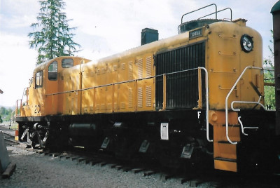 Passing Weyerhauser H-12-44 1 at the restoration shop. It was used on the White River branch to haul lumber from Enumclaw to the interchange with the Northern Pacific. Retired in the mid 1970's, it was sold to Pacific Transportation Services and purchased by NWRM in 1987.