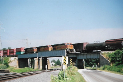 The former Chicago, Burlington and Quincy crossing over the old Santa Fe; both lines are now BNSF mainlines.