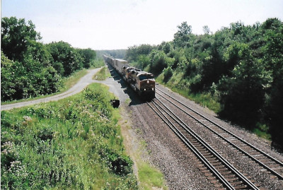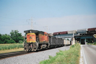 UP 6670 leads an eastbound BNSF grain train at the Belfast Road crossing in Argyle. We then went to the bridge here and were rewarded handily.