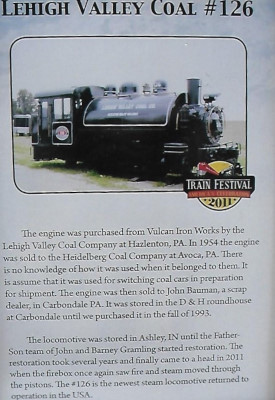 History board about Lehigh Valley Coal 0-6-0T 126.