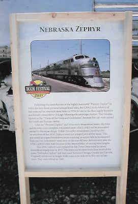 History board for the Nebraska Zephyr, which is owned by the Illinois Railway Museum.