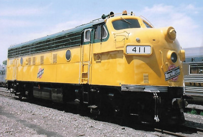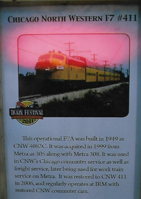 A gleaming Chicago and North Western F7A 411 (ex. Metra 305, nee Chicago and North Western 4082C). Built 1949 and is part of the Illinois Railway Museum collection.
