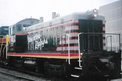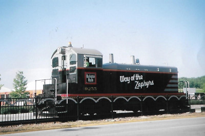 From newer diesel locomotives to older, in the form of Chicago, Burlington and Quincy SW7 9255 (ex. Davenport, Rock Island and Northwestern 121, exx. Burlington Nothern 121, nee CB&Q 7255). It was built in 1950 and retired in 1983 then donated to the Illinois Railway Museum in 1988.