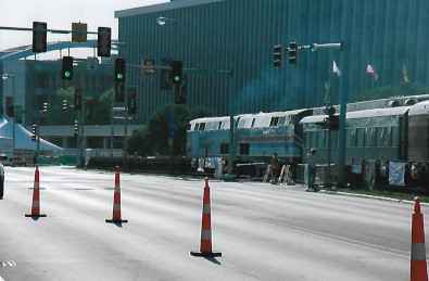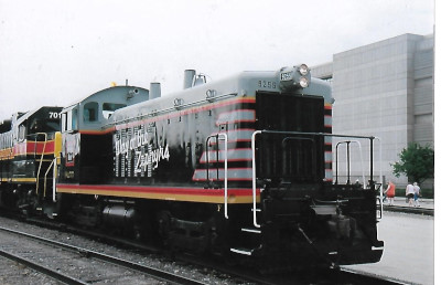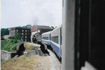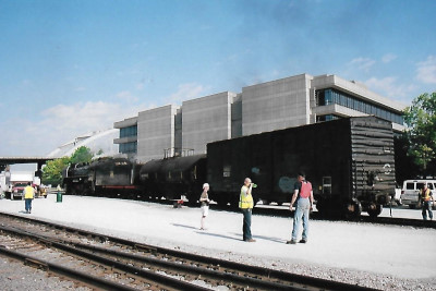 The timing of our return was perfect in that we were able to watch Amtrak P42DC 156 and P42DC 66, both in heritage livery, lead the train of private cars into Train Festival grounds; the private cars would be used some of the weekend's excursions.