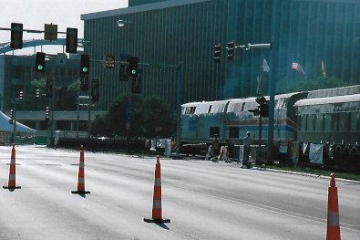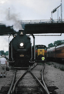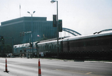 The Amtrak locomotives lead the train of excursion equipment into Rock Island. A group of us went to Jumar's Casino for a buffet dinner then returned to the hotel. The first night photo session was cancelled because of thunderstorms and I relaxed and caught up on things before calling it a night.