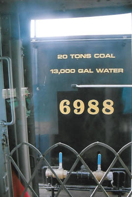 The cab and tender of Iowa Interstate 2-10-2 6988.