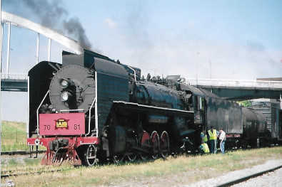 Nickel Plate 2-8-4 765 and the train pass through Moline.