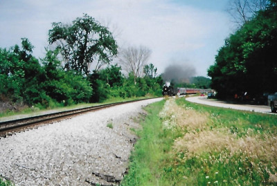 Nickel Plate 765 and the train pass our photo location. A drive along Interstate 180 to Interstate 80 to Annawan was where we set up for our next photographs.