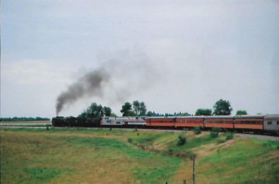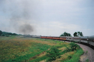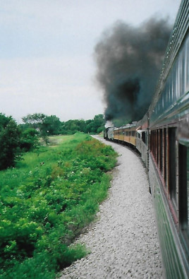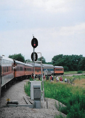 Today was the much-anticipated all-day steam excursion to Iowa City and beyond to the Homestead Wye. After breakfast at Denny's, we drove once again to the Train Festival grounds in Rock Island and queued up to board the train.
