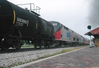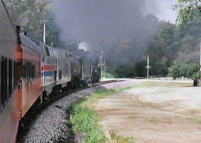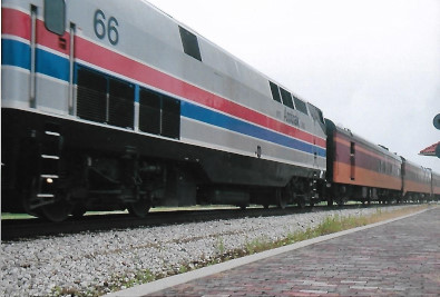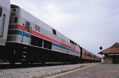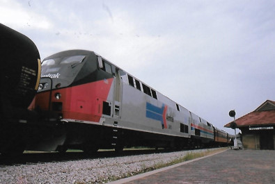 Amtrak P42DC 66 in heritage livery during the reverse move.