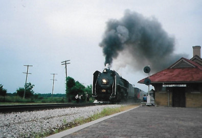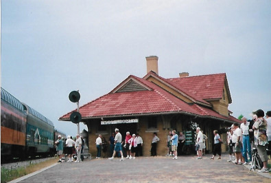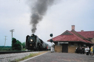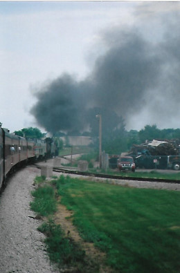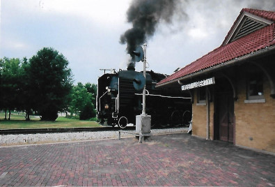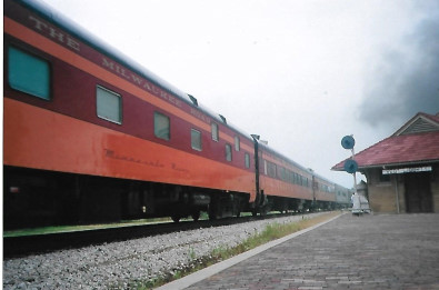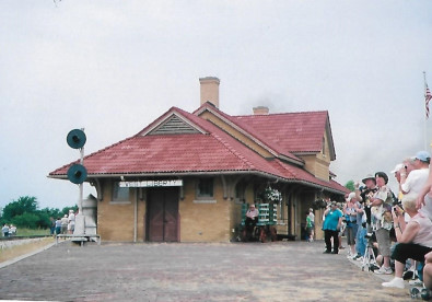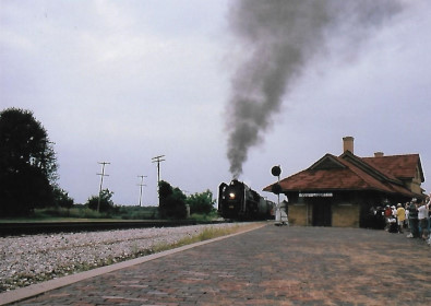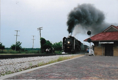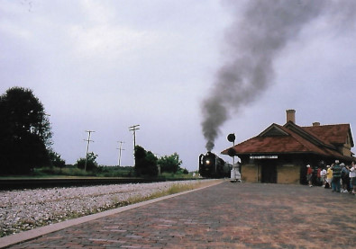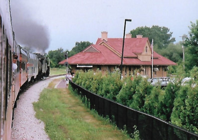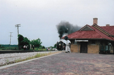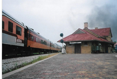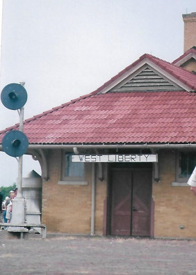 Passing the famous Rock Island station in West Liberty, built in 1897. Two photo runbys would occur here on the return trip.