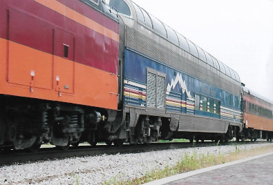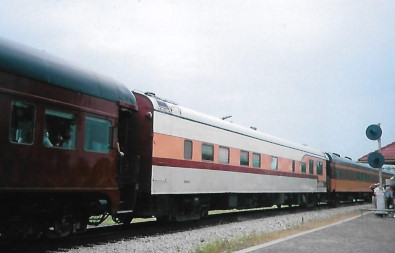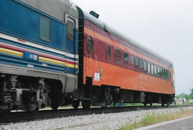 Milwaukee Road Skytop observation car "Cedar Rapids" MILW 186 at the rear of the train.
