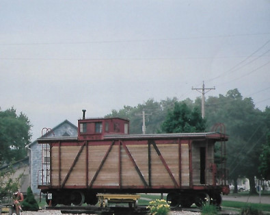 A Rock Island wooden caboose on display here in West Liberty. It was built in 1913 as a boxcar and converted to a caboose in 1940.