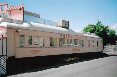 Union Pacific "Cascade Pass" (ex. UP maintenance-of-way 906032 1963, exx. UP "Pelham", nee UP 12 section/2 double-bedroom sleeper "Pelham" 1926), in which was Tequila's Mexican Restaurant.