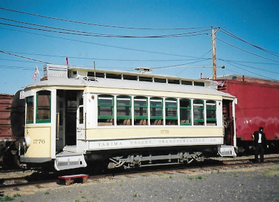 Yakima Valley Trolley 1776 (nee 266 from Oporto Portugal) coming out of the car barn. Yakima acquired it in 1974 and it was the city's bi-centennial project.