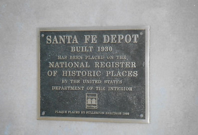 The National Register of Historic Places plaque on the Santa Fe station here.