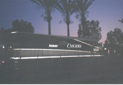 We were all surprised when Pacific Surfliner 1790 arrived with Amtrak Cascades F40PH 90230 in the consist after sunset. Surfliner 591 arrived at 20:25 and we walked back to the hotel.