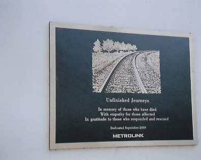 The Unfinished Journeys plaque dedicated in September 2009 by Metrolink.