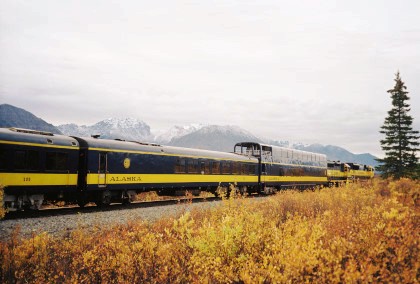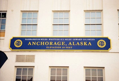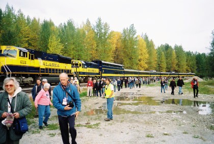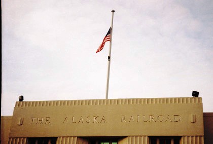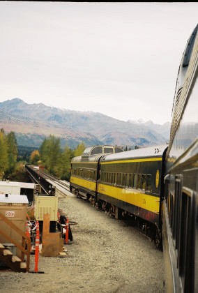The Museum of Transportation and Industry at Wasilla, as seen from the train, MP 163.7. We arrived at Anchorage to a warm welcome from the town. Once all our passengers had disembarked, Chris and I checked our coach to see if anything had been left behind, then helped carry boxes for Bart and Sarah. When that was completed, a few photographs had to be taken.