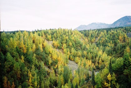 The sun had risen by the time we reached MP 347.4, Riley Creek, which is a twenty-two mile stream that flows into the Nenana River. I went to breakfast in the dining car and enjoyed the Country Starter, although my notes do not mention what that comprised.