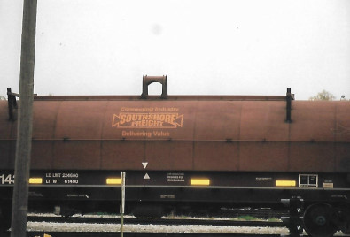 The South Shore Freight emblem on one of their coil cars. We drove back to 11th and Spring Street for more street running.