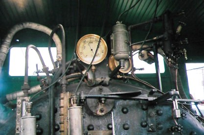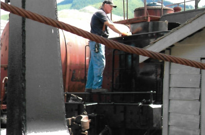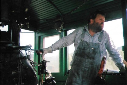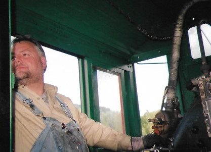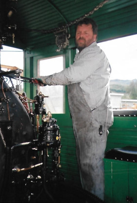 John at the throttle of the steam engine.