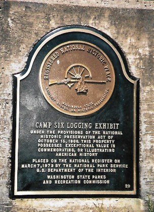 The National Historical Place plaque of Camp 6 Logging Exhibit that used to be at Point Defiance Park.