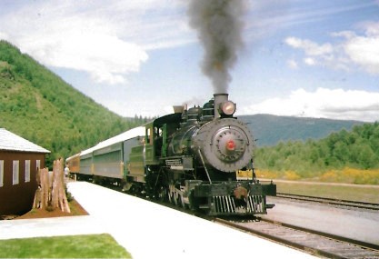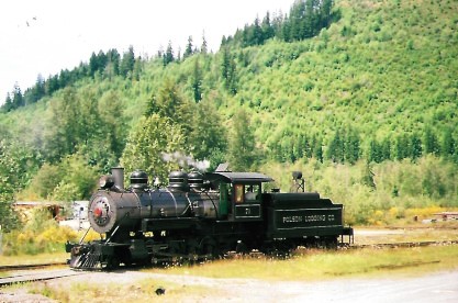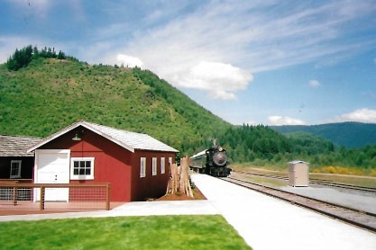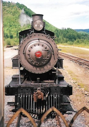 Newly-restored Polson Logging 2-8-2 70 pulling the regular passenger train into Mineral from Elbe.