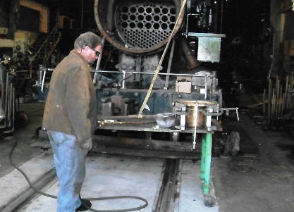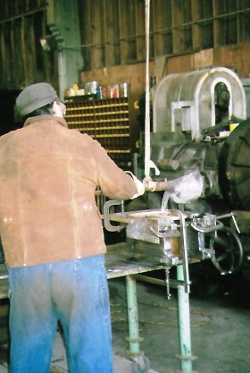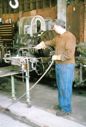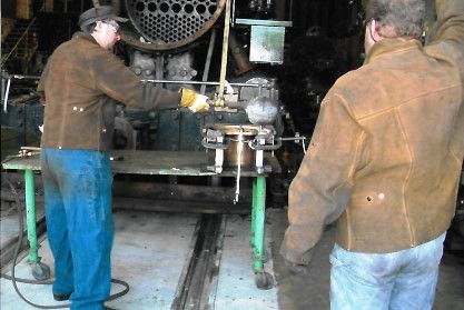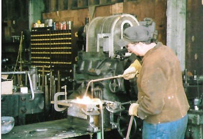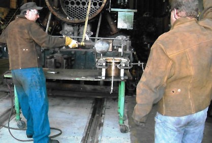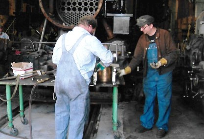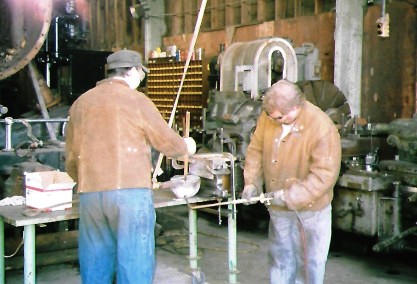 Stathi Pappas and fellow volunteer John go through the preparation, pouring the babbit and heating it.