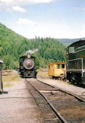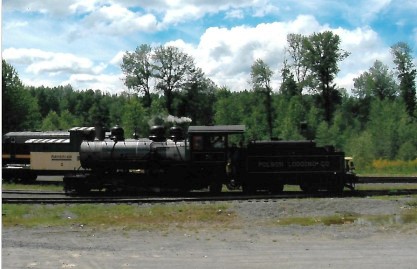 Polson Logging 70 approaching the train to couple onto it.